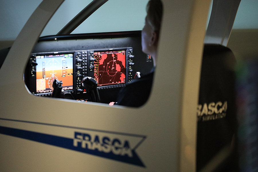 Students in CBU's aviation programs will utilize two state-of-the-art FRASCA flight simulators in their training. CBU's simulators exactly emulate our Piper Archer aircraft and have a 6-foot-high, 210-degree screen to cover all peripheral vision. Use of simulation lowers overall flight training costs and provides many advantages, even allowing a certain number of flight hours to be logged.